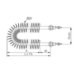 Résistance à ailettes tube Ø8.5mm Tube en inox 1-4541 Ø8.5mm Connexions par bornes plates Raccords M14 acier serti Rondelles et écrous en acier Ailettes en acier électrozinguées section 25x50 Entr'axe 25mm Puissance et longueur PL sous raccords 200W en 230V,   140mm 500W en 230V,   250mm 1000W en 230V, 450mm 1500W en 230V, 650mm 2000W en 230V, 850mm