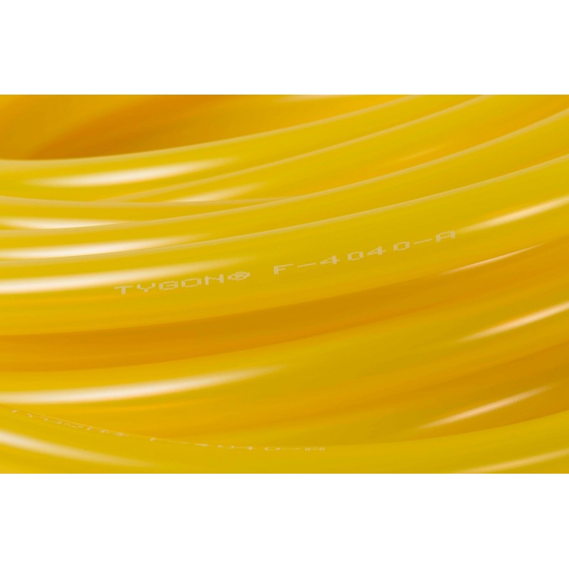 Le tube Tygon® F-4040-A, de chez Saint Gobain, est couramment utilisé pour la manutention de l’essence, du kérosène, des huiles de chauffage, des composés de coupe et des liquides de refroidissement à base de glycol. Il résiste au gonflement et au durcissement causés par les fluides à base d’hydrocarbures, réduisant ainsi considérablement le risque de défaillance due aux fissures et aux fuites. Il est extrêmement flexible et idéal pour les petits moteurs en raison de sa capacité à manœuvrer dans les endroits exigus et à simplifier l’installation. La couleur jaune translucide du tube vous permet de l’identifier et de surveiller facilement les carburants et lubrifiants qui le traversent.