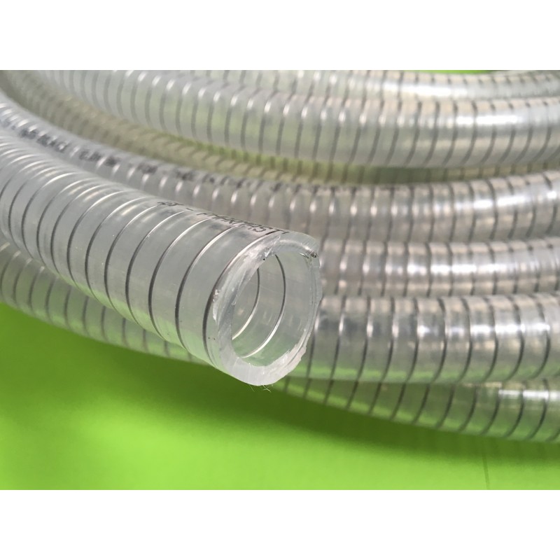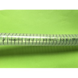 Tuyau PVC transparent alimentaire renforcé d’une spirale PVC rigide antichoc.